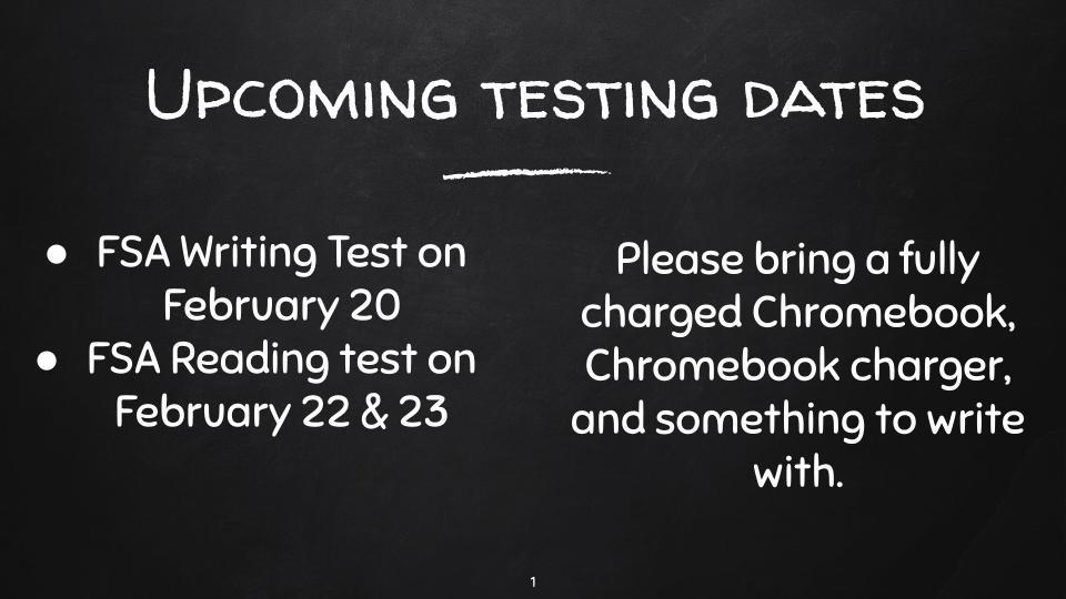 10th grade students will be taking the FAST ELA Progress Monitoring 2 Test on Wednesday, December 11, 2024. Not sure if you/your student needs to take this? Check Skyward- a message is posted for students (and their guardians) if this test is needed. Please bring a fully charged Chromebook and something to write with for testing.